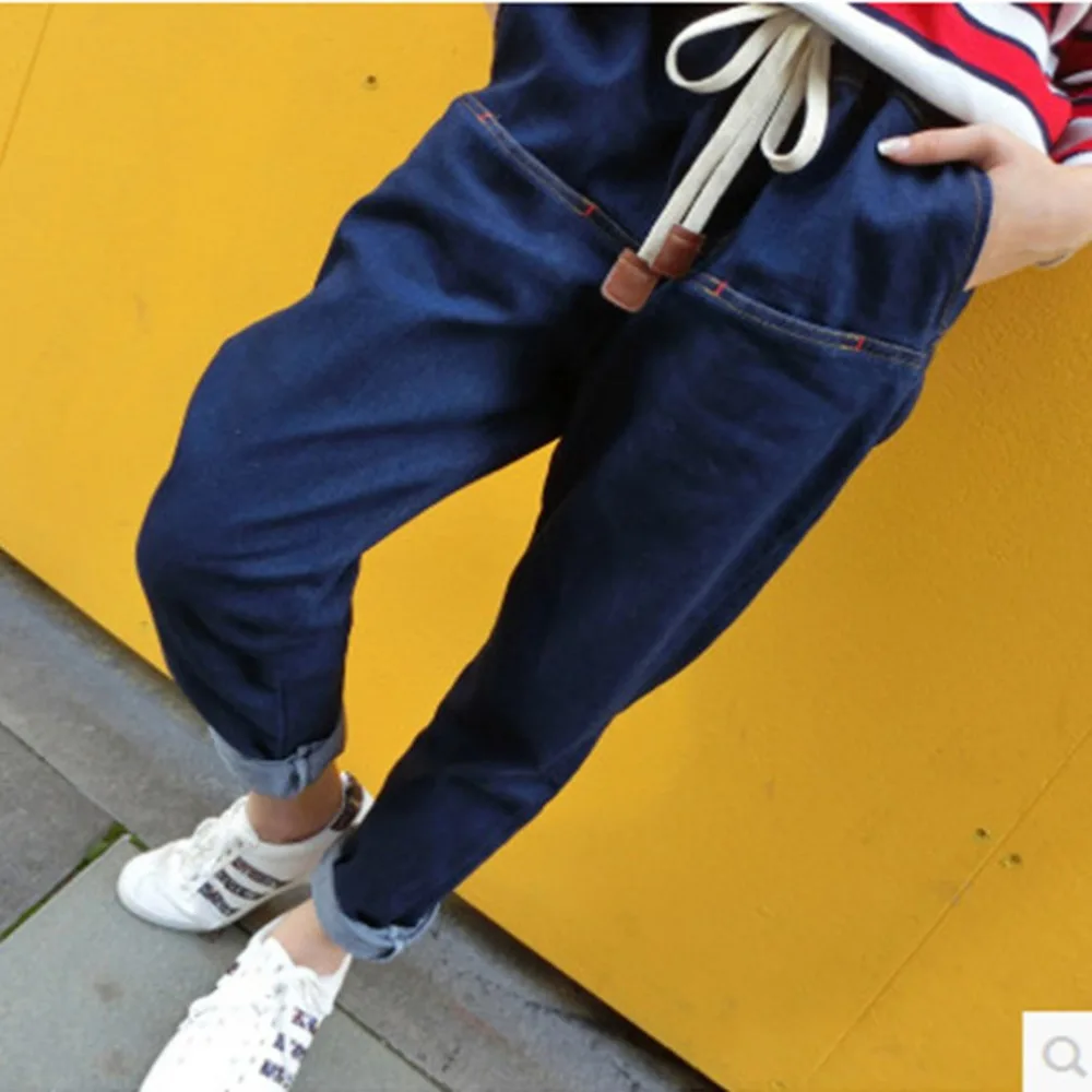 New 2018 Spring Women Harem Pants Denim Blue Color Elastic